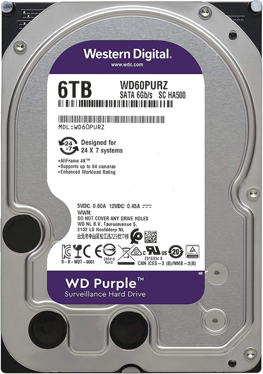 هارددیسک اینترنال »WD63PURZ» از تولیدات شرکت «وسترن دیجیتال» (Western Digital) است. این مدل در خانوادهی بنفش (Purple) سازنده جای میگیرد و برای استفاده از سیستمهای حفاظتی ساخته شده است. در سیستمهای حفاظتی و DVRها به هارددیسکی با توانایی ذخیرهی پیوستهی دادهها نیاز است و باید بتواند هر روز، حجم زیادی از دادهها را ذخیره کند. در WD60PURZ سازوکاری وجود دارد که امکان نوشتهشدن بیوقفهی اطلاعات را فراهم میکند. این مدل میتواند خروجی 64 دوربین نظارتی را به صورت همزمان روی خود ضبط کند که استفاده از آن را در سیستمهای مداربسته ایدئال میکند. ظرفیت هارددیسک 6 ترابایت و سرعت چرخش پلاترهای آن 5400 دور بر دقیقه است. 64 مگابایت حافظهی کش برای ذخیرهسازی در نظر گرفته شده است تا احتمال ازبینرفتن دادهها هنگام ذخیرهشدن به صفر برسد. به دلیل کیفیت ساخت خوب هارددیسک WD60PURZ، سازنده اعلام کرده است که میتوان سالانه تا 180 ترابایت داده را بدون هیچ مشکلی روی آن نوشت. WD60PURZ در فرم فاکتور 3.5اینچی ساخته شده است و برای نصب، به چنین فضایی نیاز دارد. اینترفیس ذخیرهسازی، رابط آشنای SATA 3.0 است و میتواند در بهترین حالت خود، به سرعت انتقال 6 گیگابیت بر ثانیه برسد.